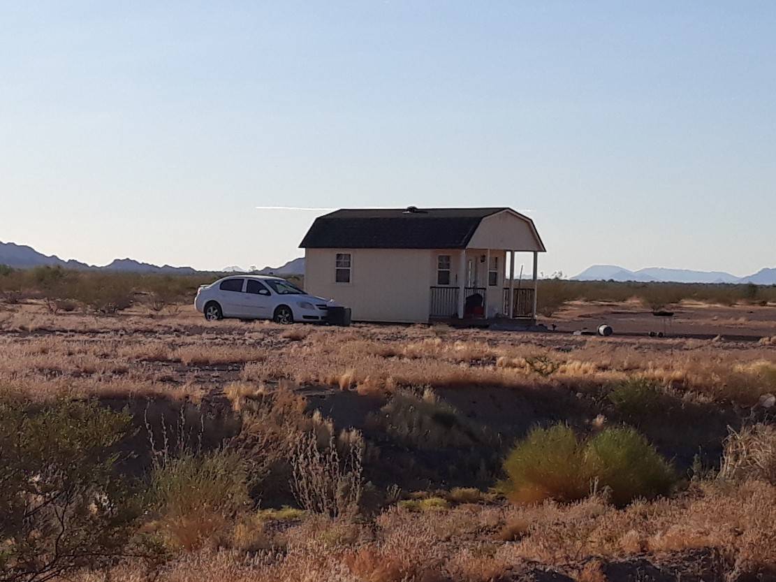 DIRECTIONS…. Take i10 highway to the Harquahala valley rd exit (also named salome exit). Cross south over the bridge and follow Harquahala valley rd for 11 miles until it ends at Baseline rd. Go right (west) about 3.1 miles until you reach 539th ave and make a right. Property on the left by the sign before the Tiny Home.